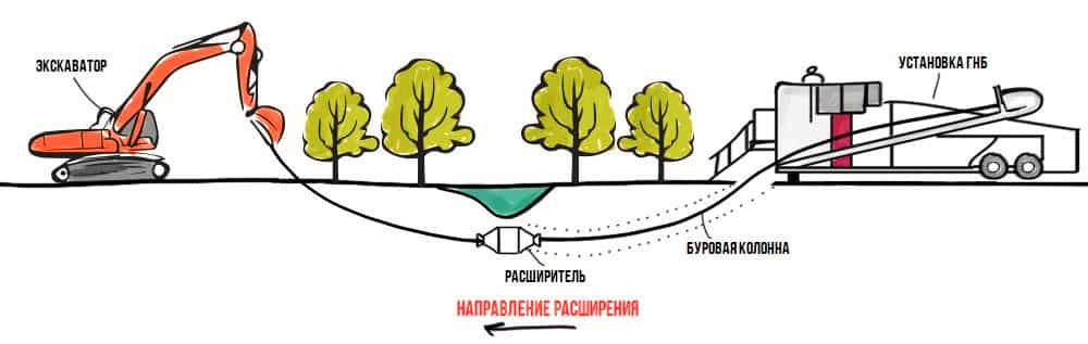 Существует три основных этапа производственной деятельности, связанные с укладкой труб с помощью ГНБ: